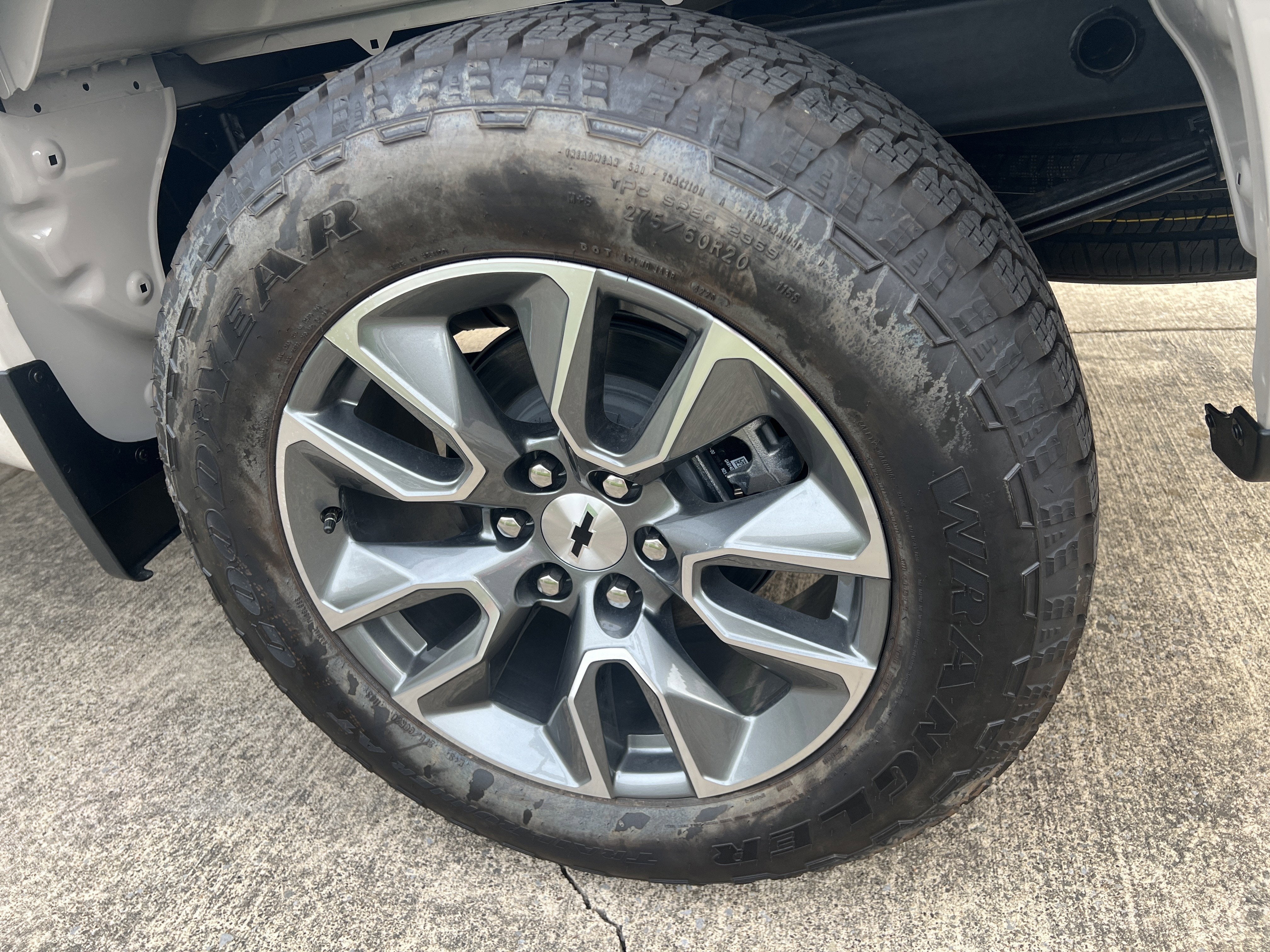 WIRELESS CHARGING, WINDOW, POWER, REAR SLIDING with rear defogger, WHITE SANDS, WHEELS, 20" X 9" (50.8 CM X 22.9 CM) PAINTED ALUMINUM with machine face and Grazen Painted pockets, USB PORTS, 2, CHARGE/DATA PORTS LOCATED INSIDE CENTER CONSOLE, UNIVERSAL HOME REMOTE, TRANSMISSION, 10-SPEED AUTOMATIC with Electronic Transmission Range Selector, (ETRS), electronically controlled with overdrive, tow/haul mode and steering column paddle shifters. Includes Cruise Grade Braking and Powertrain Grade Braking, TIRES, 275/60R20SL ALL-TERRAIN, BLACKWALL Includes (QAQ) spare tire.), TIRE, SPARE 255/80R17SL ALL-SEASON, BLACKWALL, SUSPENSION PACKAGE, HIGH CAPACITY. This Chevrolet Silverado 1500 has a strong Gas V8 5.3L/325 engine powering this Automatic transmission.