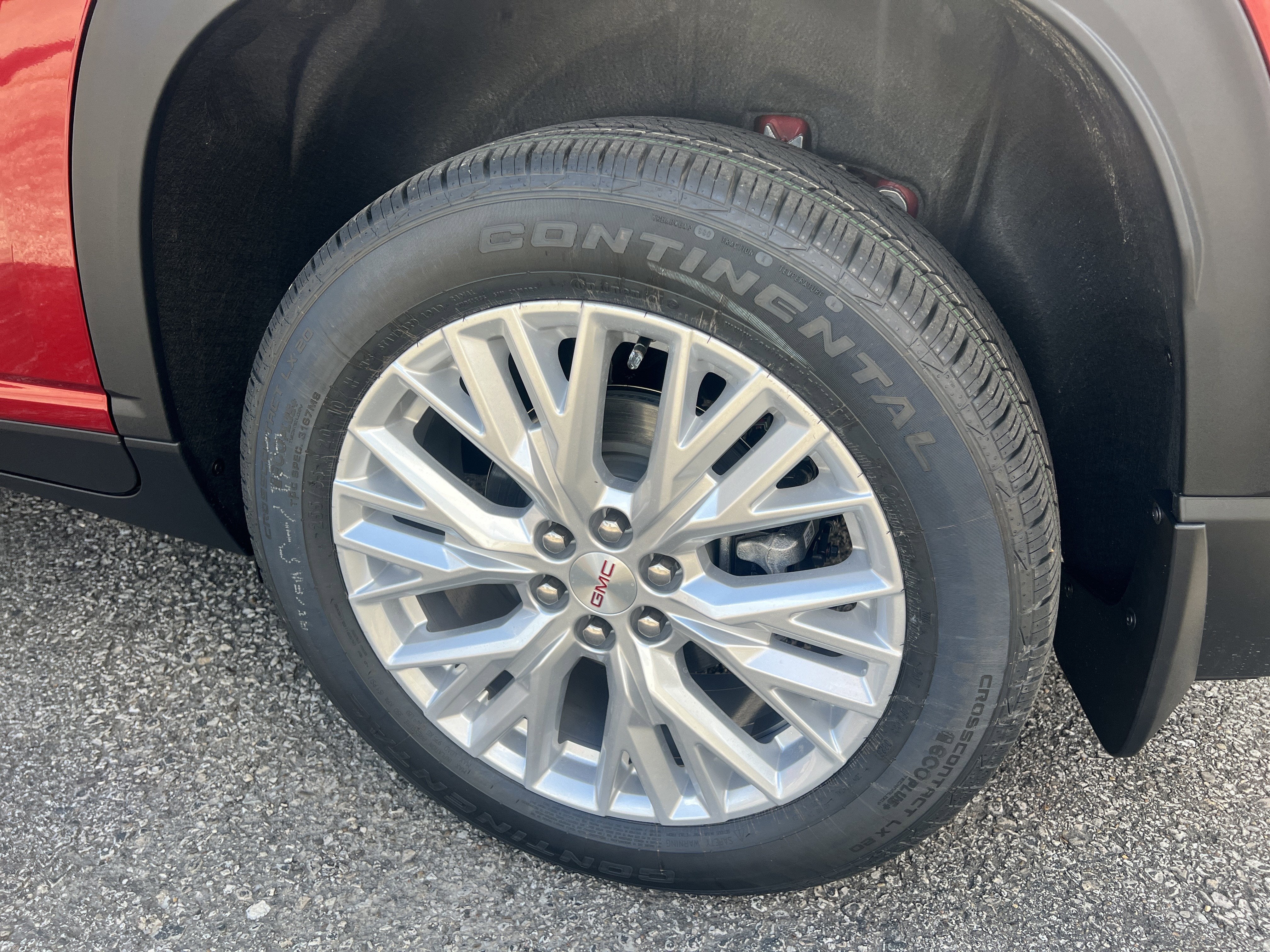 Windows, power with driver Express-Up and all windows Express-Down, Window, rear side, solar absorbing, privacy tinting, Wi-Fi Hotspot capable (Terms and limitations apply. See onstar.com or dealer for details.), Wheels, 18" x 7.5" (45.7 cm x 19 cm), aluminum, Wheel, spare, 18" x 4.5" (45.7 cm x 11.4 cm) steel, Wheel opening moldings, Vehicle health management provides advanced warning of vehicle issues, USB ports, single charge, USB ports, rear, dual, charge-only, USB ports, 2 in front (type-A and type-C), 2 in second row (type-A and type-C) and 2 in third row (type-A), Transmission, 8-speed automatic, Traffic Sign Recognition, enhanced, sensor indicator, Tires, 255/65R18 all-season blackwall, Tire, compact spare, T135/70R18, blackwall, Tire Pressure Monitoring System, auto learn, includes Tire Fill Alert, Teen Driver a configurable feature that lets you activate customizable vehicle settings associated with a key fob, to help encourage safe driving behavior. It can limit certain available vehicle features, and it prevents certain safety systems from being turned off. It includes the Buckle-to-Drive feature which prevents the driver from shifting from Park for up to 20 seconds if the driver's seat belt is not buckled. An in-vehicle report card gives you information on driving habits and helps you to continue to coach your new driver, Suspension, Ride and Handling MacPherson struts for front and independent 5-link rear, Steering wheel, sport-style, Steering wheel, heated, Steering column, tilt and telescoping.