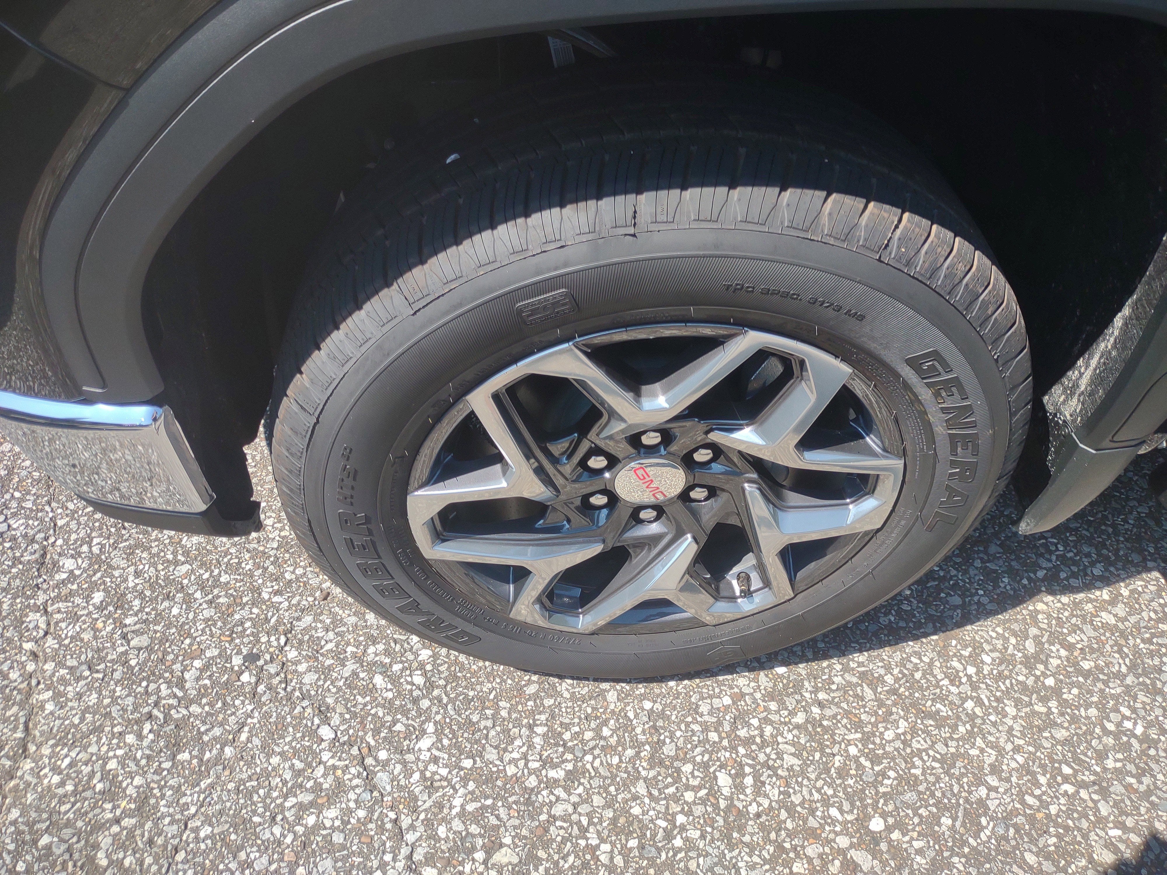 LICENSE PLATE KIT, FRONT, JET BLACK, CLOTH SEAT TRIM, GVWR, 7000 LBS. (3175 KG) (STD), ENGINE, TURBOMAX (310 hp [231 kW] @ 5600 rpm, 430 lb-ft of torque [583 Nm] @ 3000 rpm) (Includes (KW5) 220-amp alternator and (MFC) 8-speed automatic transmission. (STD), DEFOGGER, REAR-WINDOW ELECTRIC, AUDIO SYSTEM, 13.4" DIAGONAL PREMIUM GMC INFOTAINMENT SYSTEM WITH GOOGLE BUILT IN APPS SUCH AS NAVIGATION AND VOICE ASSISTANCE, INCLUDES COLOR TOUCH-SCREEN, MULTI-TOUCH DISPLAY, AM/FM STEREO Bluetooth® streaming audio for music and most phones; featuring wireless Android Auto and Apple CarPlay capability for compatible phones (STD), Wireless, Apple CarPlay / Wireless Android Auto, Windows, power rear, express down, Windows, power front, drivers express up/down, Window, power front, passenger express down, Wi-Fi Hotspot capable (Terms and limitations apply. See onstar.com or dealer for details.), Wheels, 17" x 8" (43.2 cm x 20.3 cm) 6-spoke Bright Silver painted aluminum, Wheel, 17" x 8" (43.2 cm x 20.3 cm) full-size, steel spare, USB Ports, 2, Charge/Data ports located on instrument panel, USB ports, (2) charge-only, rear, Transmission, 8-speed automatic, (Column shifter) electronically controlled with overdrive and tow/haul mode. Includes Cruise Grade Braking and Powertrain Grade Braking (Standard and only available with (L3B) TurboMax engine.), Transfer case, single speed, electronic Autotrac with push button control (4WD models only), Trailer brake controller, integrated, Tires, 255/70R17 all-season, blackwall, Tire, spare 255/70R17 all-season, blackwall (Included with (QBN) 255/70R17 all-season, blackwall tires.).