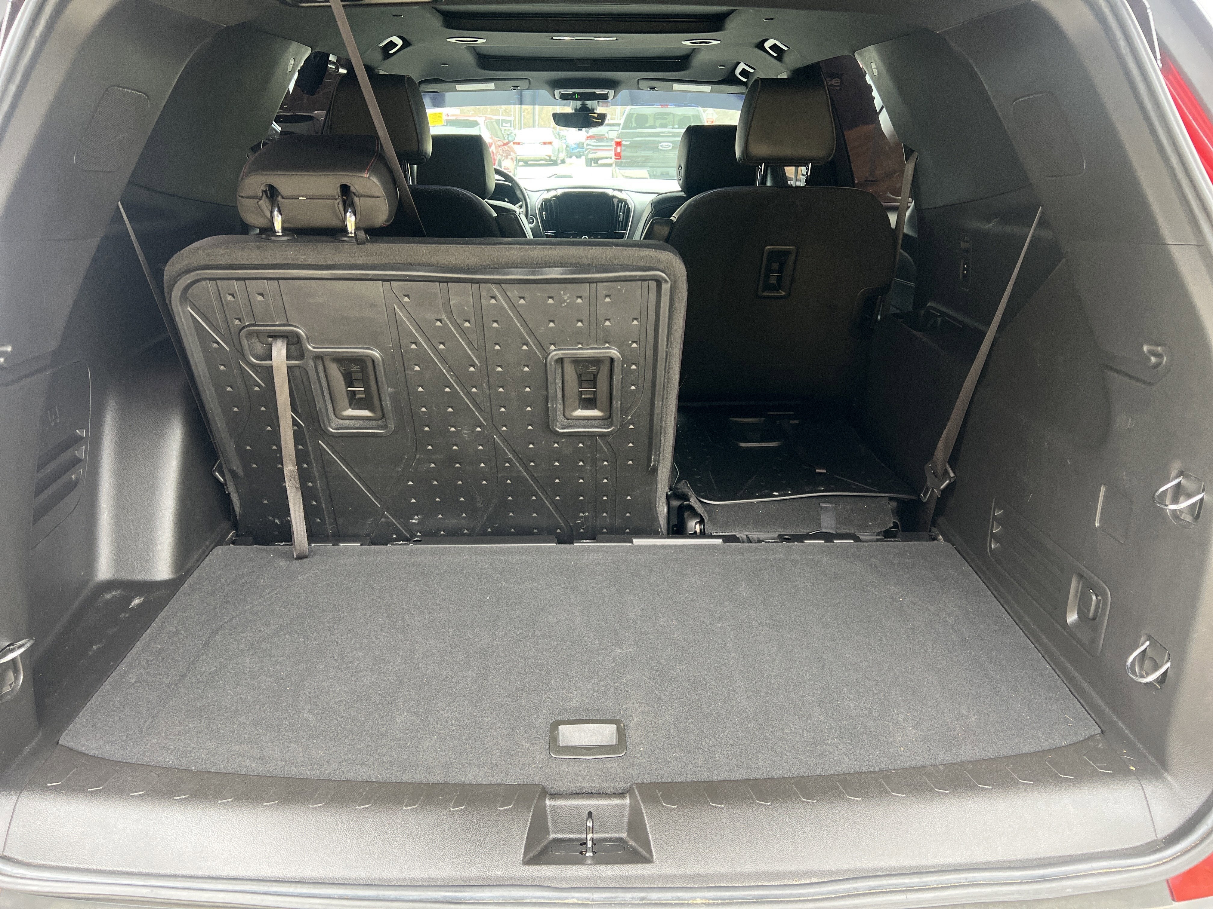 ENGINE, 3.6L V6, SIDI, VVT (310 hp [232.0 kW] @ 6800 rpm, 266 lb-ft of torque [361 N-m] @ 2800 rpm) (STD), CHERRY RED TINTCOAT, AUDIO SYSTEM, CHEVROLET INFOTAINMENT 3 PLUS SYSTEM with connected Navigation, 8" diagonal HD color touchscreen, AM/FM stereo, Bluetooth® audio streaming for 2 active devices, Apple CarPlay and Android Auto capable, enhanced voice recognition, in-vehicle apps, cloud connected personalization for select infotainment and vehicle settings. Subscription required for enhanced and connected services after trial period (STD), Wireless Phone Charging, Wireless Apple CarPlay/Wireless Android Auto, Wipers, front intermittent with washers, Wiper, rear intermittent with washer, Windows, power with driver Express Up/Down and front passenger Express-Down, Wi-Fi Hotspot capable (Terms and limitations apply. See onstar.com or dealer for details.), Wheels, 20" (50.8 cm) Dark aluminum, Wheel, spare, 18" (45.7 cm) steel, Visors, driver and passenger illuminated vanity mirrors, covered, Vehicle health management, USB ports 2 first row, 2 second row, 2 third row, Universal Home Remote includes garage door opener, programmable, Umbrella holders, driver and front passenger doors, Transmission, 9-speed automatic, Tool kit, road emergency, Tires, P255/55R20 all-season blackwall, Tire, compact spare, T135/70R18, blackwall.