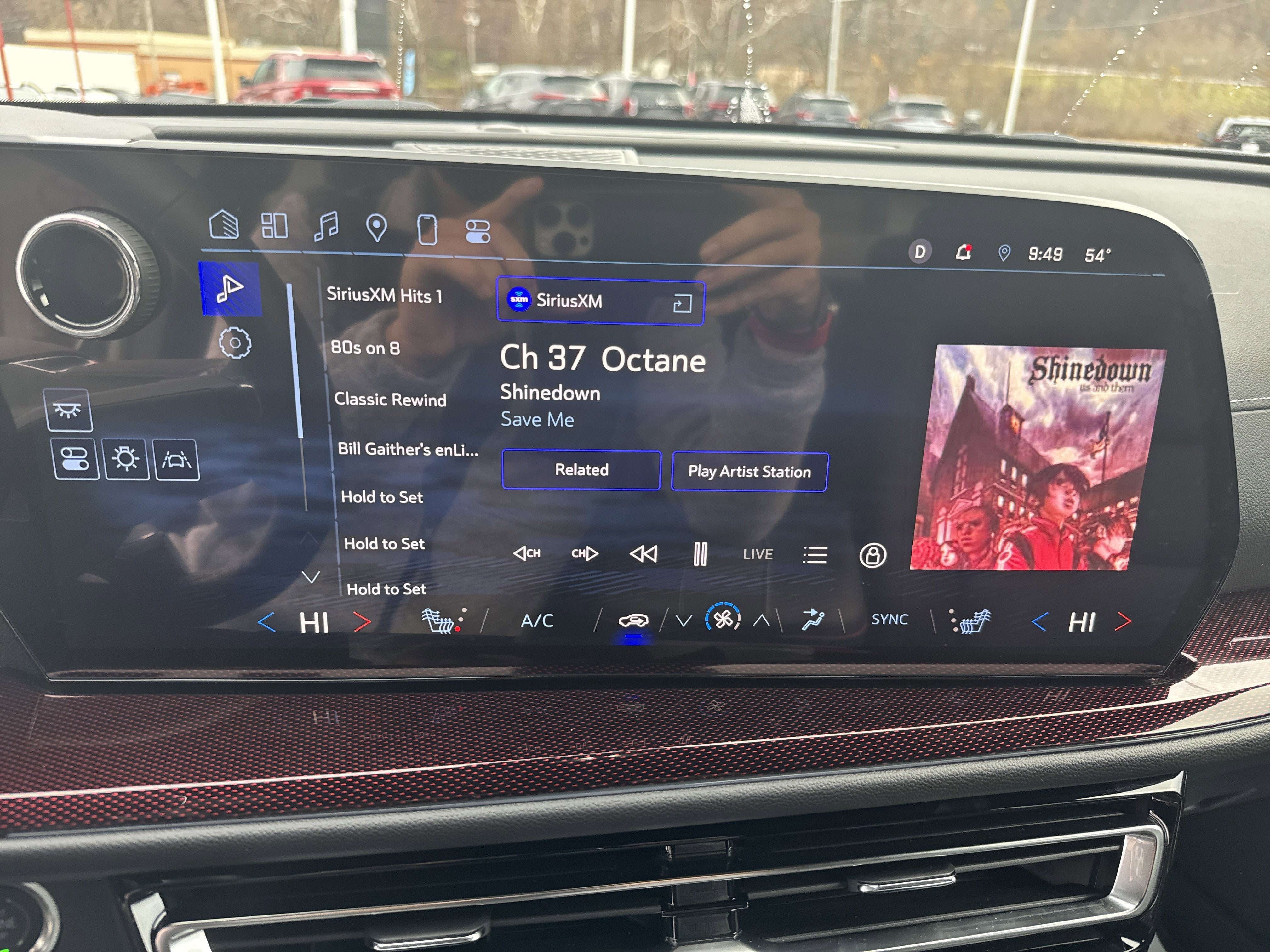 - Wireless phone charging pad located in the center console under HVAC controls